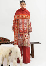 A digital-printed fusion of paisley and Mughal art in blush, terracotta, and orange, paired with a paisley rotary-print dupatta and matching pants.