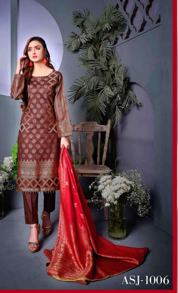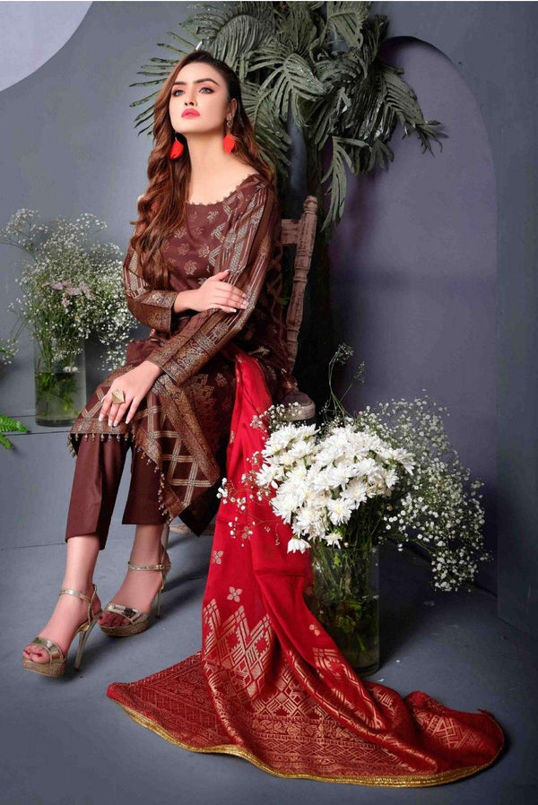 Amna Sohail Banarsi Collection is pocket Friendly and Quality Checked. Awwal Boutique has Hand Picked this Collection for You For the Rich Formal Look it Provides/Bright Shades and Exclusivity. Amna Sohail being a known Designer is already popular among the Masses. Tawakkal is a Brand which is well known and Loved. The Rich Banarsi feel with Bright and Dark Shades is an attractive Party Wear.