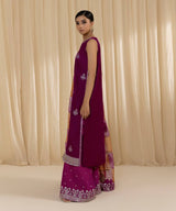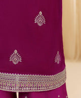 Dyed Embroidered Viscose Raw Silk Trouser 2PC