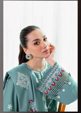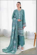 - This Sage Loom 3-piece suit expertly combines luxury and craftsmanship. The shirt features 100% cotton satin with intricate embroidery on the front and sleeves, complemented by a dyed back and a 40" embroidered patti along the placket for elegance. The cambric dyed trousers include a 60" embroidered patti, adding refined detail. Completing the set, the staple woolen dupatta offers warmth and sophisticated embroidery, making this ensemble ideal for stylish comfort across seasons.