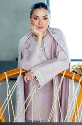 - Crafted from 100% cotton satin, the BLOSSOM TINT-3PC suit features intricate embroidery on the front and sleeves, enhanced by a dyed back for contrast. Detailed with 40" embroidered pattis on the placket and hem, it offers refined elegance. Complemented by cambric dyed trousers adorned with two embroidered patches, this ensemble balances style and comfort. The staple woolen embroidered dupatta adds warmth and texture, completing this sophisticated three-piece set.