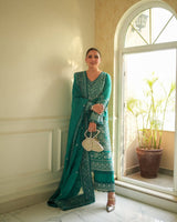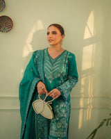 Steeped in a serene green, Calla boasts of delicate floral bursts among other botanical motifs gracing the luxuriant lawn canvas. Each flourishing motif is rendered with thread while the stylized hem borders serve as the perfect finishing touch. The set includes trousers with an embroidered patch and an organza dupatta for a look that is sure to make you stand out from the crowd.
