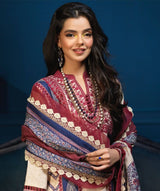 Taking inspiration from ornate motifs this print design is created with filigree details in a mix of muted beige self-combined with shades of blue and maroon. It comes with an embroidered neckline and thin border which gives one liberty to stylize it according to their own taste. This design comes with a dyed trouser and printed dupatta.