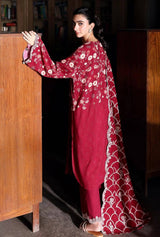 - This Berry Luxe 3PC Linen Printed Suit features a finely printed linen shirt adorned with a 40" embroidered patti on the sleeves, adding an elegant touch to the design. The set includes linen-dyed trousers that provide a comfortable and refined fit, paired perfectly with an intricately embroidered dupatta to complete the sophisticated look. Ideal for those seeking a blend of traditional craftsmanship and modern style.