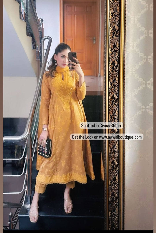 Spotted in Cross Stitch Basant/Mustard Oriane/Silk Dupatta