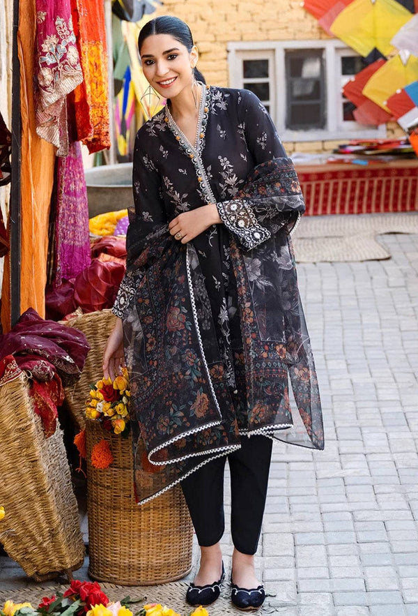 Cross Stitch Basant/RAVEN COAL/Organza Dupatta