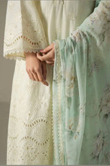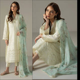 Expertly crafted with lawn chikankari embroidery on the front and sleeves, this Chikankari LAWN SUIT adds a touch of elegance to any wardrobe. The dyed back and cambric trouser with 60" schiffli Embroideries offer both style and comfort. Complete the look with the luxurious Chiffon printed dupatta.
