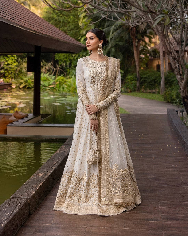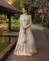 Restocked/Faiza Saqlain Lawn 25/Lily/Off White & Gold