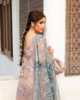 Aytan is a testament to the timeless allure of heirloom pieces. Handcrafted by top-tier artisans with expert know-how of each technique, this graceful net shirt and its sweeping gharara come sublimely ornamented with resham, tilla and sequins. The captivating tea-pink hue and embroidered net dupatta further add to the fairytale charm of the enchanting ensemble.