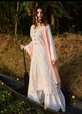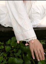 Shamdani, capturing the summer glow, an ensemble crafted with delicate stitchwork. Dreamy white canvas used to master Chikankari embroidery with peachy pink threads to draw a dense shirt front and sleeves. Paired with a dull coral chikankari embroidered voile dupatta and white cambric pants to complete an ethnic look. Tailor it according to your style – give it your touch.