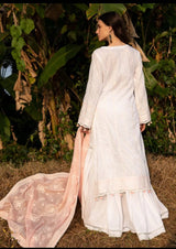 - Three Piece Embroidered ChikanKari Suit With Embroidered Voile Dupatta