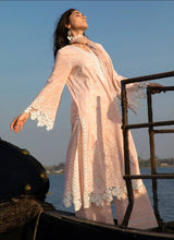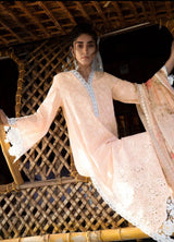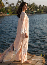 Arghavan, a bud from the Judas tree blooming in the tropics, designed with master techniques to depict utmost elegance. Vana pink themed ensemble with a dense spread of floral motifs and leafy network embroidered using pearl white thread amalgamated with Broderie anglaise and eyelet embroidery to finish off the shirt. In-built white floral guipure lace inserts for the shirt and sleeves for a look to resonate with the summer garden. Comes with a matching trouser and pure chiffon digital printed dupatta with vibrant pink roses and moss green flowers. Our fashion advice would be to get a long shirt with straight pants stitched and wear it with silver accessories to your Eid dinners.