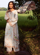 - Three Piece 3D Embroidered Suit With Digital Printed Silk Dupatta