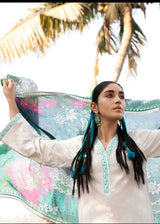 - Three Piece Embroidered ChikanKari Suit With Digital Printed Silk Dupatta