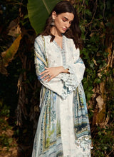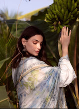 Zenha, a beautifully crafted ensemble using cool hues of blue and white to mimic the summer breeze. Breathable cotton-lawn fabric used to sketch aquamarine 3-D embroidered floral motifs along with pearly white leafy running patterns. The shirt is finished using milky blue lace inserts on the edge of the sleeves and shirt hem resembling a network of flowers to give visual aesthetic to the overall outfit. The outfit is paired with a flowy pure chiffon digital printed dupatta, with yellow and blue shades to portray beachy vibes. Stitch this piece according to your liking, our suggestion would be to go for long straight kurta and wide-legged pants.