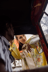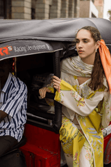 Restocked/Mushq La Dolce Hemline Prints/Corina/Yellow/Silk Dupatta