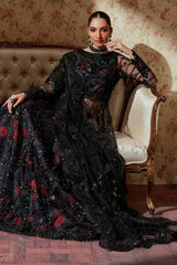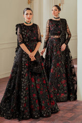 Accompanied by a net dupatta edged with a delicate border embroidered & embellished with silver sequins, offering a subtle contrast against the darker elements of the ensemble.