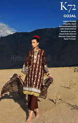 Dyed Embroidered Front with Embroidered Neckline and Laces -2.5 Mtrs