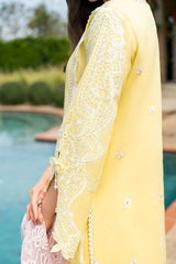 CORAL BLISS is an ethereal vision of tranquility and serenity, featuring a light-colored ensemble with a cotton shirt and trouser fusion paired with an entrancing organza net dupatta featuring mesmerizing floral embroidery.