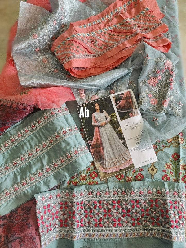 Restocked/Maria B Mbroidered/Aqua/Crystals Embedded/BD 2803