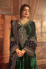 Embroidered Velvet Sleeves and Ghera Lace with Pearls
