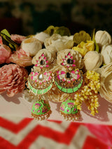 Minakari Jhumkis|Brass|Light Weight|Mint Green