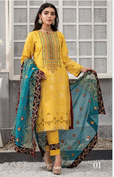 2) All Designs with *Organza Slub Heavy Embroidered with Velvet Four Side Applique* Dupatta.