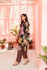 Floral Line Art Printed 2 Piece Shirt with Trousers