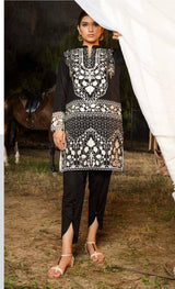 Adans Libas Muzayyan Jacquard Black Kurti Collection