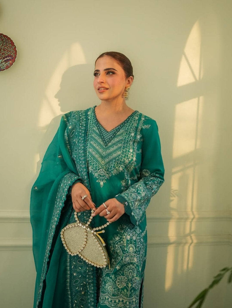 Spotted in Faiza Saqlain Lawn 25/Calla/Teal Green