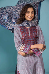 The perfect desk-to-dinner outfit with this printed embroidered three-piece from the latest unstitched summer collection.