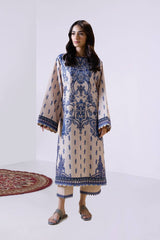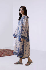 Elevate your everyday style with this beige hued printed embroidered khaddar two piece ensemble.