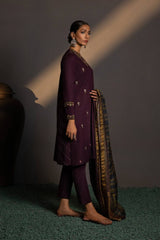 Revamp your wardrobe with this purple hued khaddar two piece ensemble paired with multicolor zari dupatta featuring Kashmiri patterns.