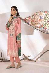 Refresh your wardrobe and style yourself with this pink hued linen outfit featuring embroidered neckline and printed dupatta.
