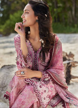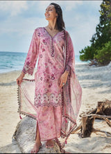 Neeshay features mauves and plum tones with subtle detailing in soft green tones, and English florals combining Mughal inspired motives and paisleys. It is complemented by a matching dupatta.