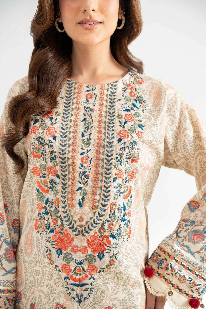 Exude grace with this digital printed embroidered three-piece from the latest unstitched summer collection.