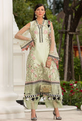Fabric: Note: The suit comes with sleeves Front: Texture cotton net Back: Texture cotton net Sleeves: Embroidered Net Pants: Dyed Cambric Dupatta: Digital printed tissue silk Embroideries: Embroidered neckline patti Embroiderd ghera silk patti Front patches (2) Ghera patches (2) Cutwork silk border |