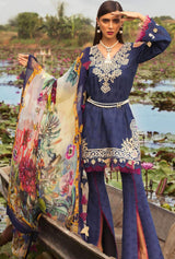 Fabric: Front: Embroidered schiffli lawn Back : Embroidered schiffli lawn Sleeves: Embroidered schiffli lawn Pants: Printed cambric Dupatta: Digital printed pure chiffon Embroideries: 1)Silk border for shirt 2)Embroidered cutwork neckline |