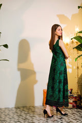 Fabric: Embroidered chiffon front with sequins– 30 inch Embroidered chiffon back – 30 inch Embroidered chiffon sleeves – 1.25 Meter Embroidered tissue sleeves lace-1.25 Meter Embroidered tissue ghera lace – 1.5 Meter Embroidered Chiffon dupatta – 2.50 Meter Raw silk trouser – 2.5 Meter Embroidered tissue trouser lace for pasting |