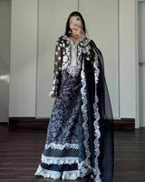 - Dupatta: Dyed Organza Dupatta With Four-Sided Embroidered Border.