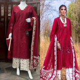 - Embroidered Cambric Trouser 2.5 Mtr - Solid Dyed Lawn Back & Sleeves 1.5 Mtr - Solid Dyed Chiffon Duppatta Center 2.16 Mtr