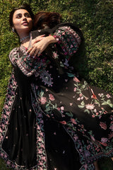 Introducing ‘Nayab’, a vision of winter luxury, where a sumptuous ebony canvas is adorned with untamed floral embroideries in shades of carmine, moss, and violet. Each stitch tells a story of timeless elegance, evoking the serene beauty of winter’s quiet embrace. The meticulously embroidered dupatta, with its vintage ornate borders, adds an ethereal touch, enveloping you in the enchanting charm of old-world sophistication.