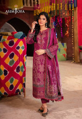 This gorgeous outfit, bathed in the rich tones of twilight amethyst, features a captivating design that celebrates the vibrant heritage of South Asia. Inspired by ancient motifs the design whispers tales of a timeless tradition. The complementary printed dupatta completes the look, transforming you into an effortless vision of elegance.