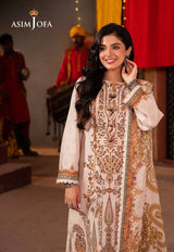 Radiate grace in this serene ivory ensemble. The shirt and dupatta boast a ravishing design, echoing the intricate henna motifs cherished by Pakistani women. This beautiful piece channels the essence of your heritage, making it perfect for any occasion.