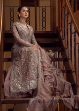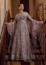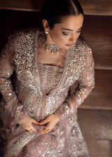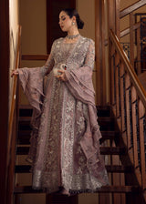 Va Va Voom! Our seventh and most sought after look is the definition of Wedding Glamor! Featuring an entirely cutworked bodice, handworked 3D alternating panels of a beautiful floral jaal and bootis with extra godet panels for added flair, handworked sleeves and cutwork insertions, this lilac number is a headturner. The dupatta is pre-stitched and finished with cascading ruffles - an Austrian crystal encrusted layer lies atop a beautiful floral print and a solid dyed lilac organza, held together with a beautifully worked border.