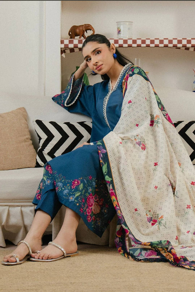 Experience elegance and comfort with our Midnight Tide 3-piece lawn printed suit. The shirt features a beautiful lawn print and 80 embroidered patti for the sleeves. Our cambric dyed trouser adds a touch of sophistication, while the chiffon printed dupatta completes the ensemble. Perfect for any occasion.
