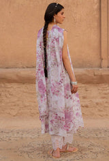 - This LILAC HINT 3-piece printed lawn suit features a lawn printed shirt with an embroidered neckline, 40" embroidered patti for hem, and 40" embroidered patti for sleeves. The cambric dyed trouser and chiffon printed dupatta complete the look. Elevate your wardrobe with this versatile and elegant suit.