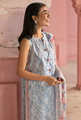 This AQUA ICE-3PC printed lawn suit includes a lawn printed shirt with 40" embroidered patti for the hem and 60" embroidered patti for the sleeves. The cambric dyed trouser and chiffon printed dupatta complete the elegant and stylish ensemble. Elevate your wardrobe with this expertly crafted, high-quality suit.