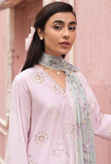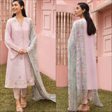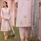 Expertly crafted with lawn fabric, this 3-piece suit features a delicate chikankari embroidered front and sleeve, complimented by a dyed back. The cambric dyed trouser, accompanied by a 60" schiffli patti, provides a comfortable and stylish fit. Complete the look with the chiffon printed and embroidered dupatta.