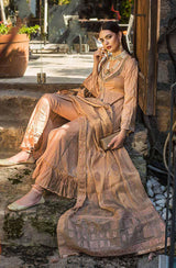 Fabric: Embroidered Messori Dupatta With Gold Lace & Tassels Gold Printed Shirt With Jacquard Border Embroidered Neckline With Hand Work Dyed Bottom |